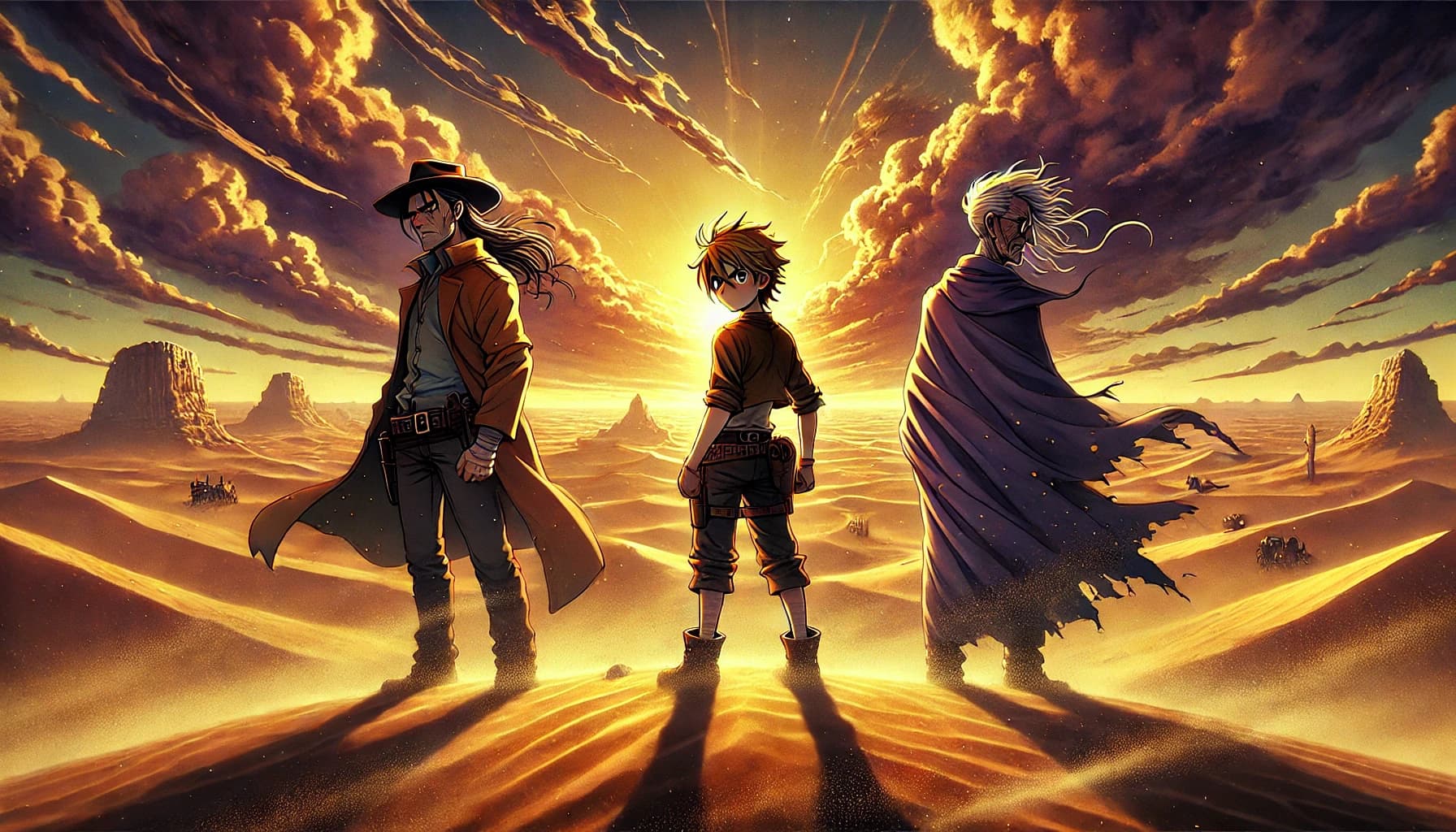 エンディング直前には、砂嵐に消えそうになる三人が黙々と荒野を進む姿が印象的に描かれ、「この先に待つ困難」を想起させていた。