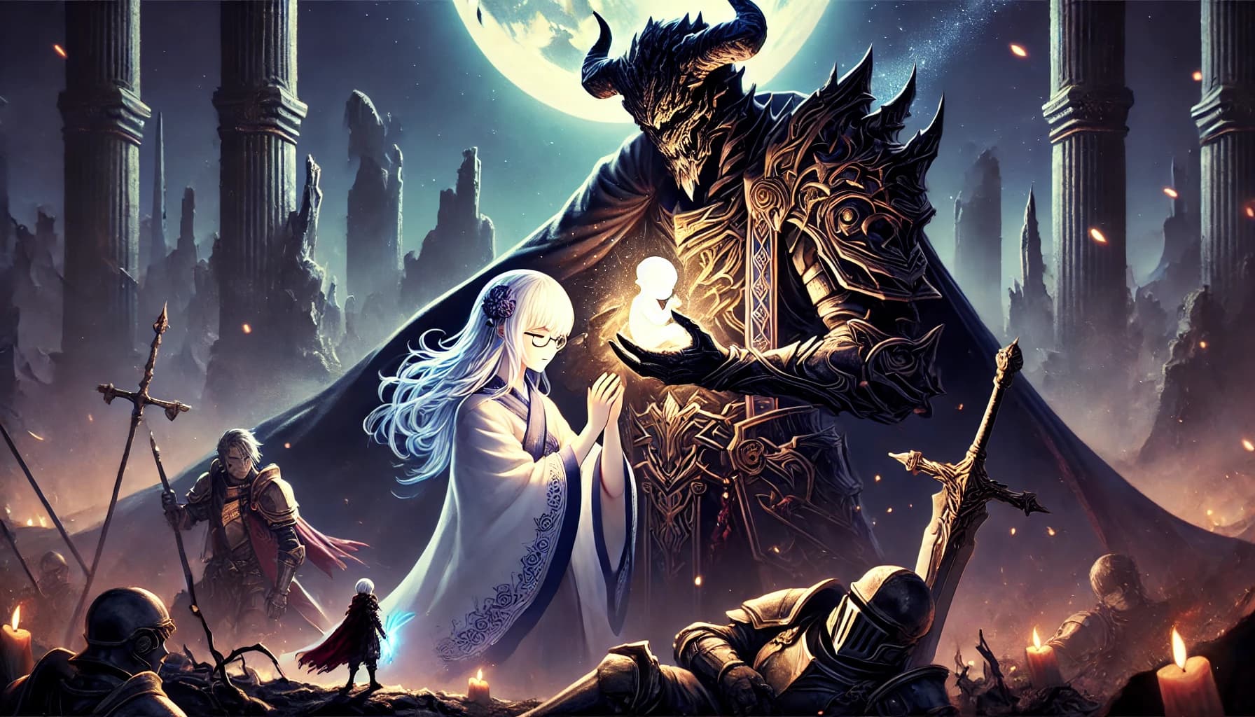 赤子の小さな手が、クレバテスの角に触れた。その瞬間、魔王の眉がわずかに揺れる。